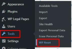 Once activated, go to Tools > WP Reset from the dashboard menu.