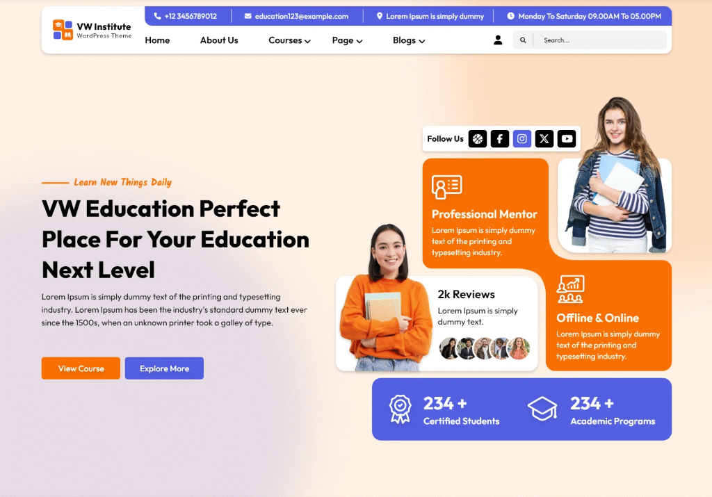 This theme is one of the most dynamic Responsive WordPress Templates, offering a design that adapts perfectly across desktops, tablets, and mobile devices. It supports multimedia integration for educational videos, blog functionality for sharing knowledge updates, and contact forms for inquiries all while maintaining a user-friendly experience for both students and administrators. The SEO-friendly structure ensures your institution gets found online, and the customization options make it easy to align with your brand identity. Ideal for anyone looking to promote courses or educational services online, this theme turns your website into a powerful learning hub that’s easy to manage and scale.