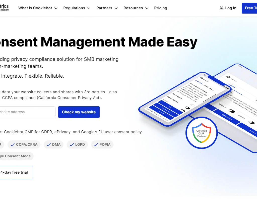 Cookiebot CMP is available with both free and premium plans. While the free version covers basic consent management, the premium tiers unlock advanced compliance features, enhanced customization, and support for larger or more complex websites.